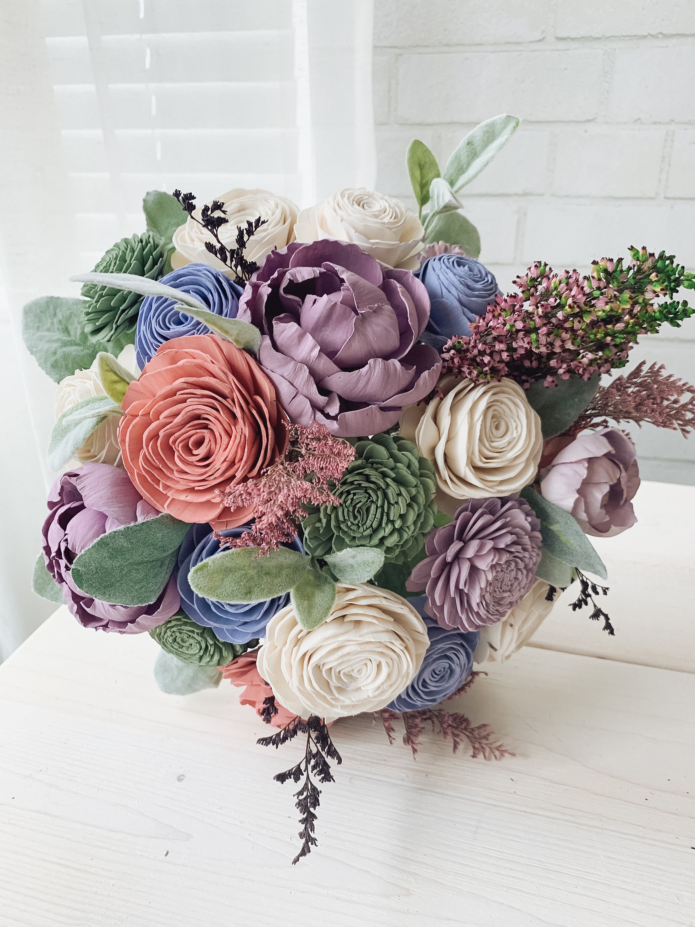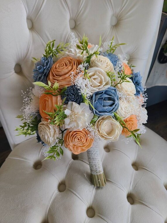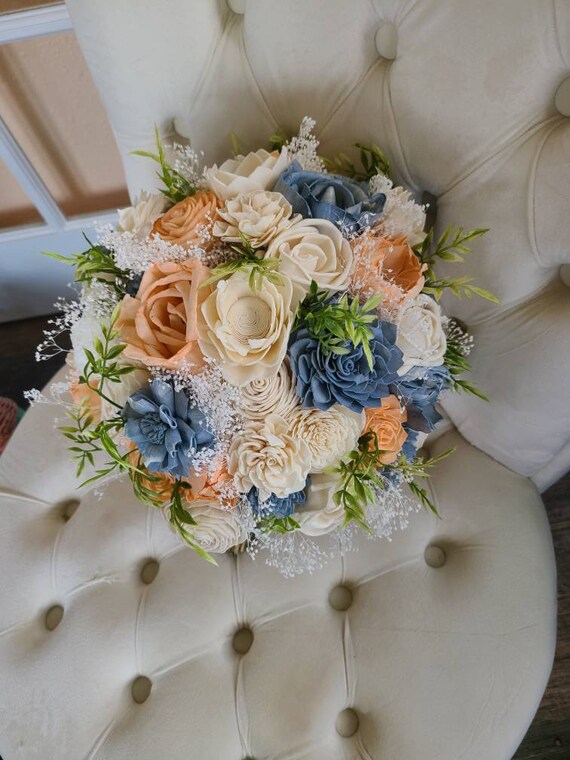 Dusty Blue And Peach Bouquet Slate Blue Flowers Sola Wood Etsy Canada