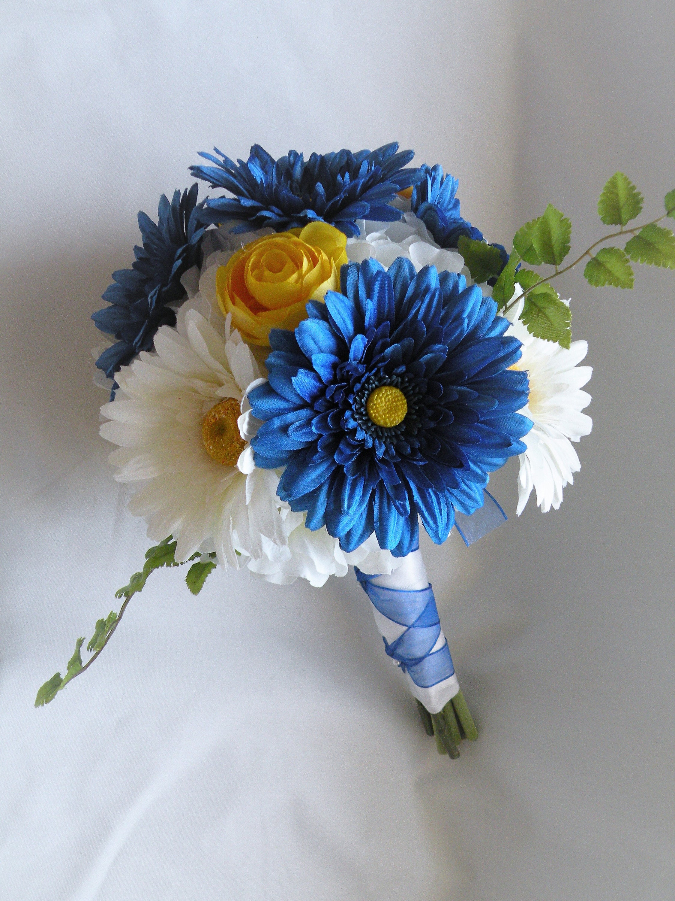 Blue Wedding Bouquet Cobalt Blue Gerberas Yellow And White Etsy Canada